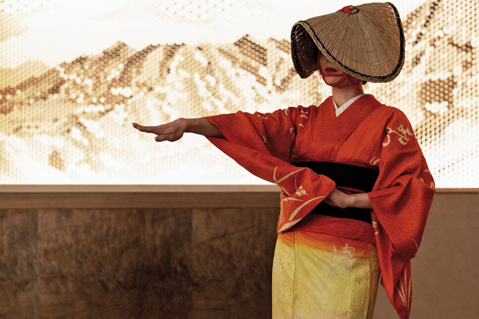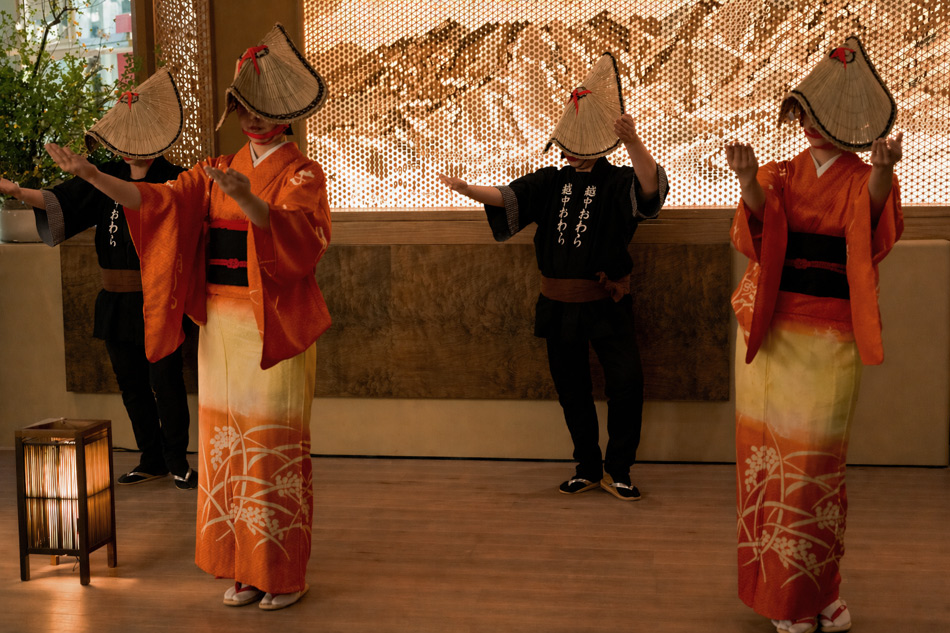 おわらをコンセプトにした組子の前で舞っていただき、、伝統芸能と伝統工芸がひとつに重なる瞬間に、ものづくりを生業にするものとして深い感動を覚えました。